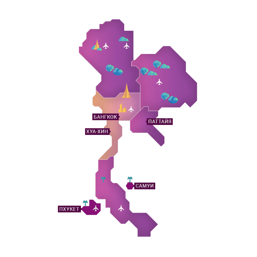 Оказавшись в Таиланде, вы сможете посетить Королевский Дворец и загадочный остров Джеймса Бонда, прогуляться по заброшенным пещерам и поплавать с дельфинами, узнать, что такое настоящий тайский бокс и даже поучаствовать в джип-сафари.
